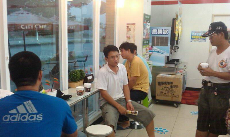 雨愈下愈大,大伙坐到7-11裡面去
