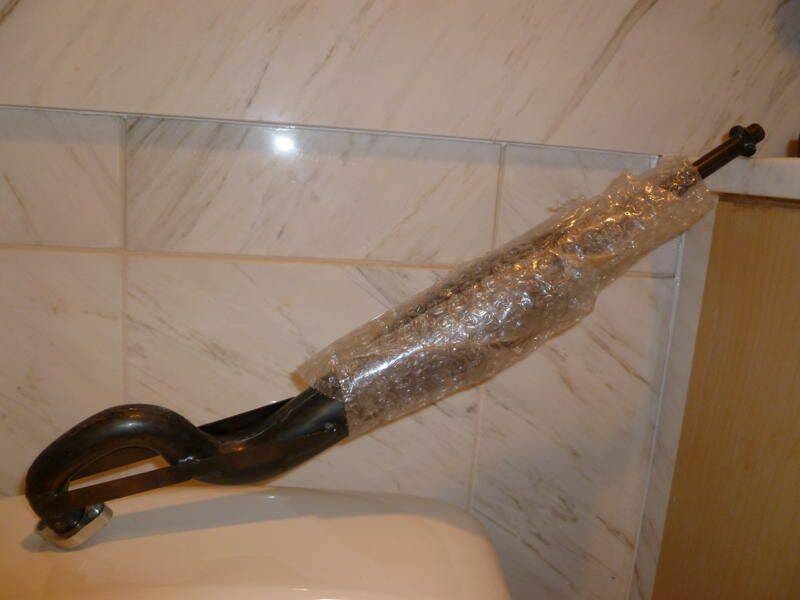 眼尖!這是老外家的廁所,他先幫我照的,引擎還在飛機上交寄中,運費就要$5500NTD,船還沒訂,只是計劃裝在這艘上!