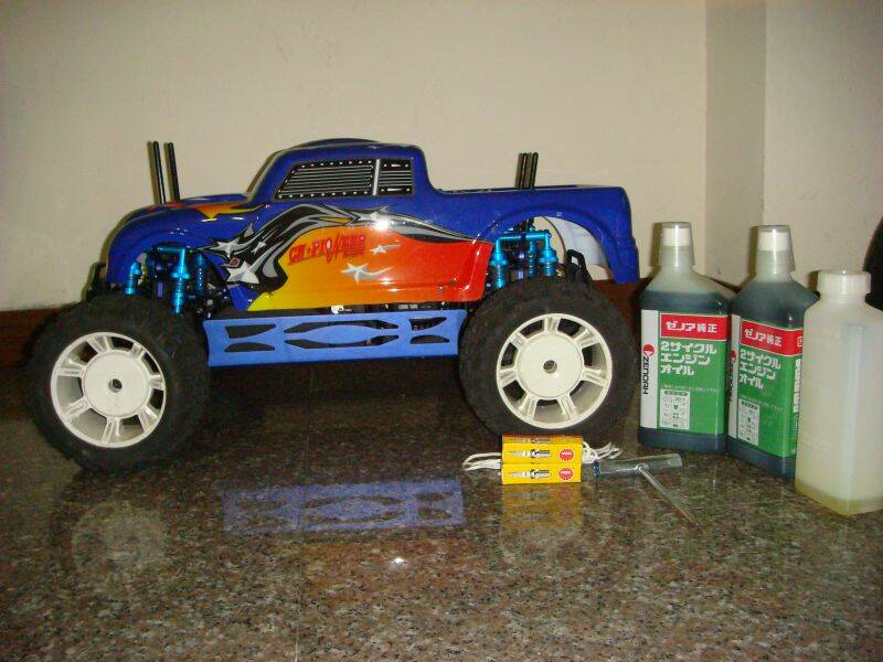 出售:1/5 29.c.c 四輪傳動汽油大腳車含倒車系統,此車試車過扭力大,速度快,易發動(因受制於場地問題故出售),外觀有九成五新的