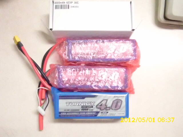 原帖由 dannyalan 於 2012年5月1日 07:10 PM 發表 售全新Turnigy 3000mAh 6S 30-40C 電池二顆單顆售1550元和活化5趟Turnigy 4000mAh 6S 40-50C 電池一顆2050元需要請PM謝謝!