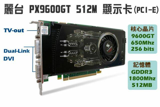 產品規格麗台 PX9600GT 512M 顯示卡